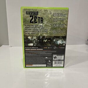 The product is the case and artwork for the video game "Fallout 3: Mothership Zeta" released for the Microsoft Xbox 360 in 2009. Published by Microsoft, this action and adventure game is rated M for Mature audiences. As an expansion pack for the popular Fallout 3 game, players can explore the Mothership Zeta to uncover new quests, characters, and locations within the game's immersive world. The NTSC-U/C (US/Canada) region code ensures compatibility with consoles in that region.
