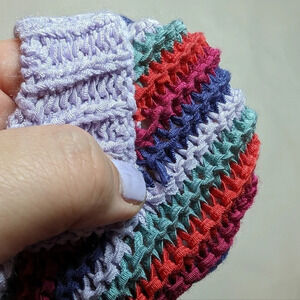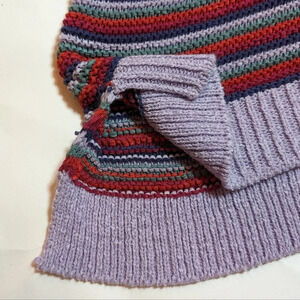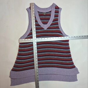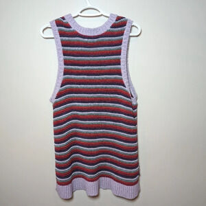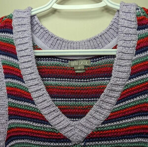 Falls Creek 1X Sleeveless Striped Crochet Knit V Neck Sweater Vest Shirt Plus Size - Lavender Purple Pink Orange Teal Green Blue Striped