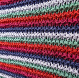 Detailed crochet tie style knit design, striped colours, deep v, side slits , stretch in fabric.