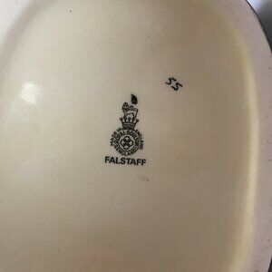 The Falstaff Large Toby Jug by Royal Doulton is a collectible ceramic piece that portrays Sir John Falstaff, a character from William Shakespeare's plays "Henry IV" and "The Merry Wives of Windsor." These jugs are part of Royal Doulton's Toby Jug series, which are characterized by their whimsical and detailed representations of various characters and figures.