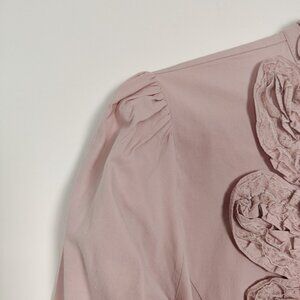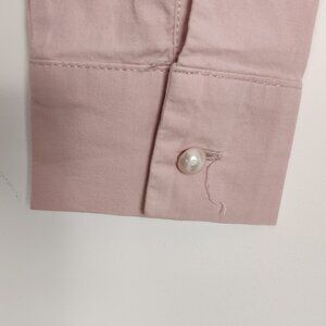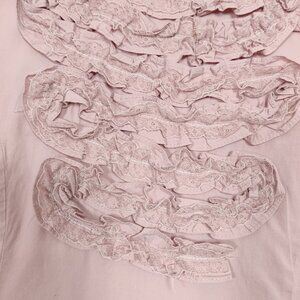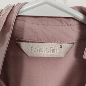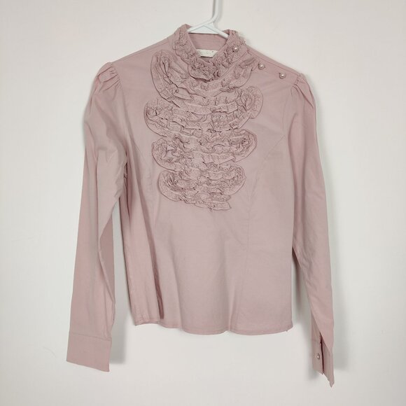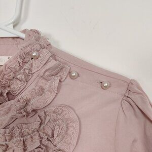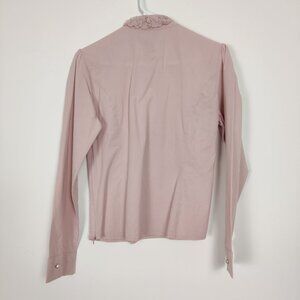 Famelin Women's Blouse Size 2 Pink Pearl Lace Mock Neck Business Casual Elegant