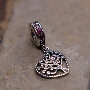 Family Tree Heart with Pink & Red Accents Dangle Bracelet Charm - NWOT.