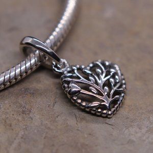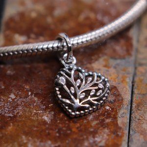 Family Tree Heart Dangle Bracelet Charm - S925 Sterling Silver Fits Pandora