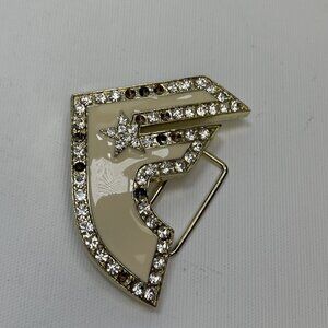 Famous Stars & Straps Rhinestone Covered F Emblem Silver Color Y2K Belt Buckle
