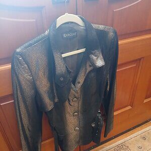 This is a one of a kind creation by famous brand Kircilar (Turkey) . Wonderful fashion to really impress . Soft, supple leather . Multi step, complicated process in making this leather. Has a metallic , Eel feel . Fashion elite. XXL. EU 44. New and unworn. 27" length . 26" sleeve. 17" across the shoulders.