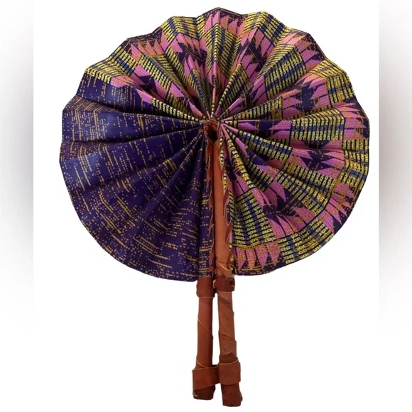 Beautiful African hand-held fan made from colorful Ankara or African fabric crafted in the genuine leather handle and