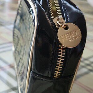 Fan Di Fendi Pouch Gold Lettering Zip Closure Makeup Bag Cosmetics