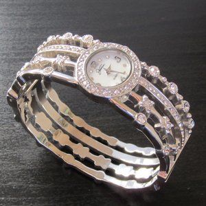 Fancy Bangle Watch Hinged Bracelet with MOP dial and Rhinestones