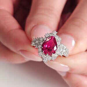 Fancy Pear Red Ruby Gemstone Ring - 925 Sterling Silver Charmed Aroma