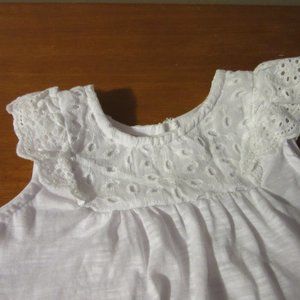 Lightweight in white with a sweet pattern around arms and collar. This is a cotton / polyester blend by 7 for all mankind.