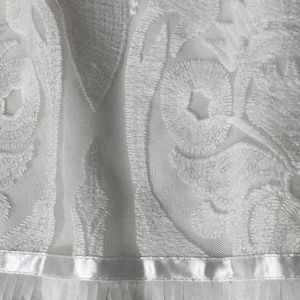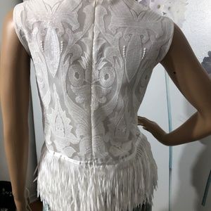 Embroidered Fanci white top with fringes. Made large. Ziper in the back. Fits size 6 to 8. White lining. New