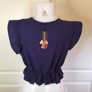 Brand new Fancyinn women’s size medium navy blue ruffled deep V crop top. Cute and flirty crop top with elastic hem line. 65% Cotton and 35% Polyester