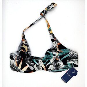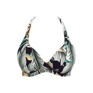 Fantasie Bamboo Grove Bikini Top Jet Size 36DD Plunge Halter Neck Black 501604