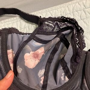 * Full coverage four paneled cup with floral motif set on midnight blue fabric ensures great uplift, separation
