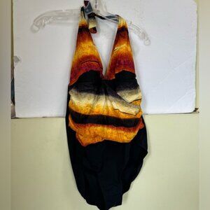 Fantasizer NEW Faux Wrap Halter 1 Piece Swimsuit Gradient Sunset Support Cups 16