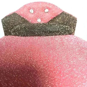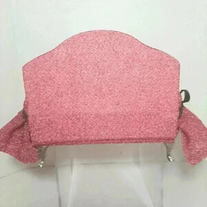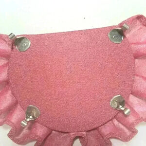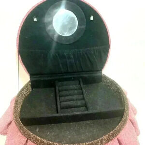 Great fun on this jewellery box. Sparkle and bling. Fancy feet and ruffles. Lightweight. Foam with metallic Pink and Chocolate materials. Measures approx. 10 x 7 x 5 inches.
