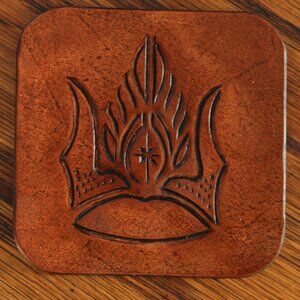 A brand new handmade leather Fantasy Coaster set. Made from veg-tanned genuine full-grain leather, with carved tooled designs that will take you to far of lands.
