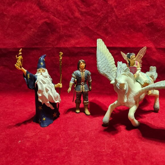 This fantasy play set is a combination of Schleich and Papo figures. The items come from a smoke free home and are in good condition. Please inspect the items carefully as I do not accept returns. If you have additional questions please do not hesitate and I will try to get back to you in a timely manner.