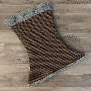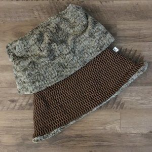 Excellent vintage condition, reversible neck warmer by Elfarrow, featuring a black and yellow woven pattern throughout. The reverse side is made of a soft silvery, marble of grey toned faux fur that can be turned down. Elfarrow is an ethical clothing company located in Kathmandu, Nepal. The brand promotes local markets, small businesses, fair wages, as well as, provides a safe environment for their employees to work in. All garments are handmade, hand dyed, silk screened and hand stitched. This garment is gorgeous and unique. Comfortable, adjustable, stylish while still practical and sure to add interest to any outfit. So soft. I believe these are from the late Y2K or 2010s. A truly unique item. Discontinued.