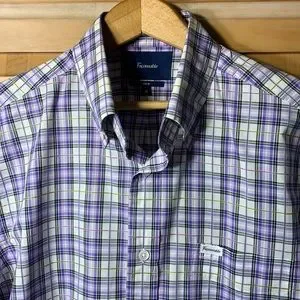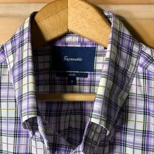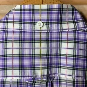What a gorgeous palette of colours in this casual shirt from the French label. Lavender and pink and yellow and just a hint of green… this will pair well with nearly everything. It’s in outstanding shape too; just like the rest of my collection. The cotton thread is thin and woven really tight making the fabric feel light and strong. The cut is modern and the tailoring and finish are top notch.