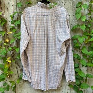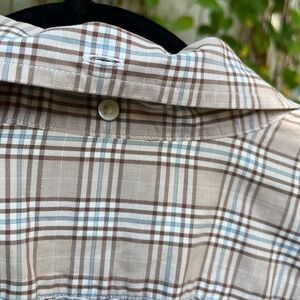 Façonnable Men’s Check Plaid Button Up Shirt - Beige / Brown / Blue, Large Tall