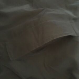 85% polyester-15% nylon shell. Body lined 100% cotton and lining 100% nylon. Navy with beige lining. Multi pocket details. Drawstring at inner waist.