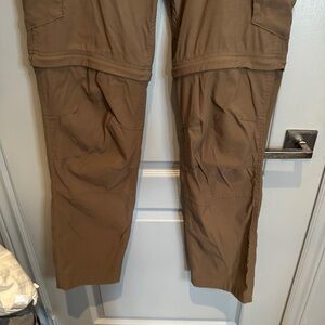 Hiking pants from FarWest in a taupe brown color with detachable legs that zip on and off, allowing the pants to become shorts. Perfect for outdoors activity that allows you to leave the extra clothes at home - a great utility piece.