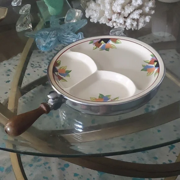 beautiful vintage food warmer...just add hot water and your dish stays warm...beautiful colors