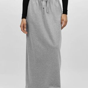 A simple cut sweatshirt featuring a small and minimal embroidered logo. Designed to be styled with our matching Jogger Maxi Skirt, with little to no bulk when worn together.
