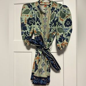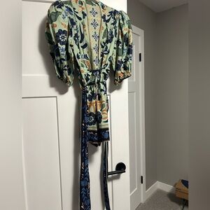 Elegant romper featuring a vibrant floral pattern. Puff sleeves add a stylish touch. Perfect for any occasion. Only worn twice.