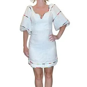 Farm Rio White Colored Stripes Short Sleeve Mini Dress