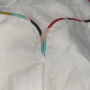 Curved front and back sweetheart necklines, trimmed with a pop of Farm Rio colour!