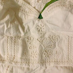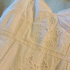 Merveilleuse robe Farm Rio, en coton avec broderies. Très artisanale. Très belle robe romantique. Taille large. Peut meme être portée pour votre mariage ou pour les fêtes de fin de l'an. Acheté sur le site da Farm rio, mais trop grande pour moi, par la suite j'ai commandé une autre mediun . Payé plus 500$.** Si vous etes interesse a mon garde de robe, il sera disponible jusqu'a le 26 Novembre, par la suite je pars a l'exterieur du Canada pour l'hiver, de retour seulement en Mai 2026*, Merci.