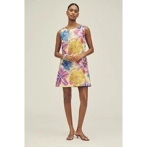Farm Rio x Anthropologie Sleeveless Mini Shift Dress Lavender Yellow Floral S