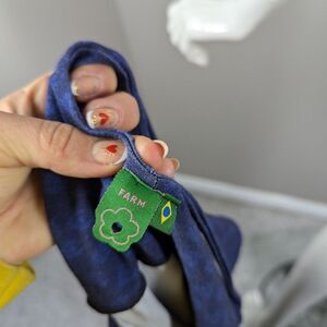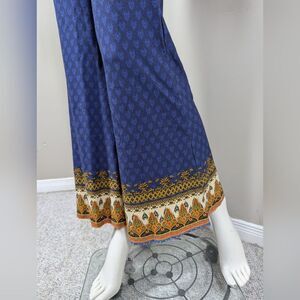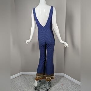 Farm Rio Blue Boho Print Jumpsuit Size Medium Stretchy Flare Leg One Piece