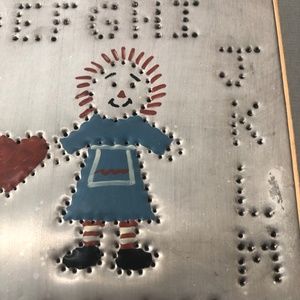 Vintage metal picture with matting and rustic wood frame. Examine pictures carefully as not “perfect” as is vintage and rustic. 16 x 13” Really adorable in a farm house style.