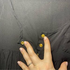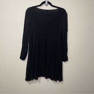 Farm rio Women's Black long sleeve deep crewneck babydoll casual shirt in size S