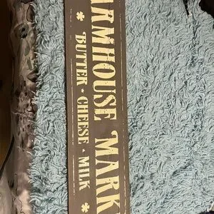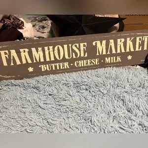 Rustic farmhouse market sign with 'Butter Cheese Milk' text. Perfect for home decor.