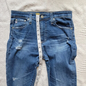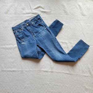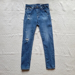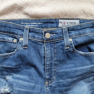 Farrah Skinny Ankle, AG-ED High-rise skinny ankle denim jean- The Farrah Ankle skinny jean for women features a medium indigo shade that's been washed down and faded to emulate 12 years of wear. Subtle whiskering and crease marks add to the vintage look. Cut with a high-rise waist and cropped length at the ankle, this women’s skinny jean is designed in 10 oz. Empower Denim with added stretch for luxurious, all-day wearability.