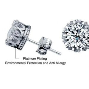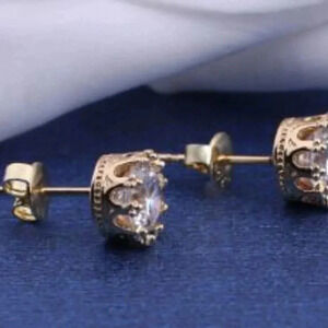 Fashion Crown Zircon Stud Yellow Gold Tone Earrings