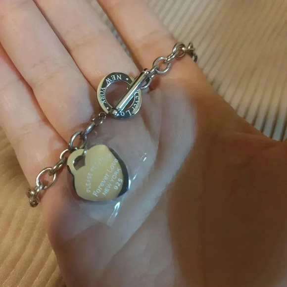 Fashion Heart Charm Silver Stainless Steel Bracelet - NWOT