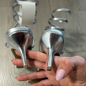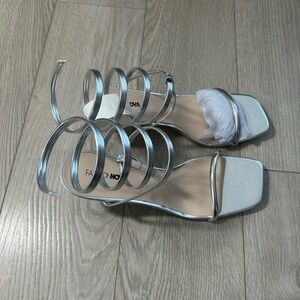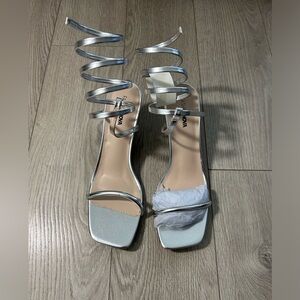Fashion Nova All Time Fav Wrap Up Heels - Silver