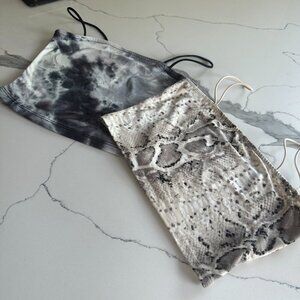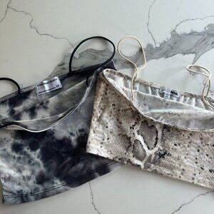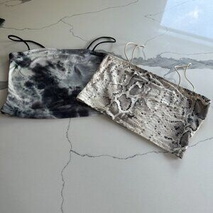 Grab this stylish 2-for-$12 SALE bundle featuring two statement-making crop tops in size small – one from Fashion Nova in a beige snakeskin print, and the other from Streetwear Society in a black/gray tie-dye. Perfect for nights out, festivals, or everyday layering with jeans or skirts!