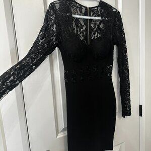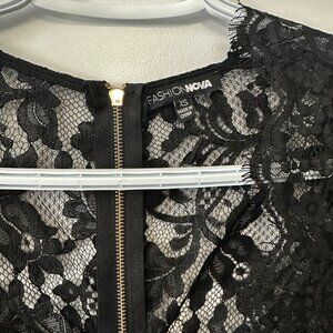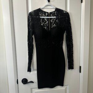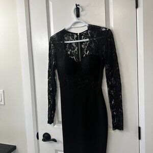 Fashion Nova Black Lace Long Sleeve Bodycon Mini Dress – XS