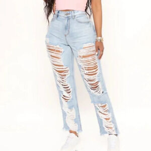 Fashion Nova Cello High Rise Straight Leg Distressed Jeans