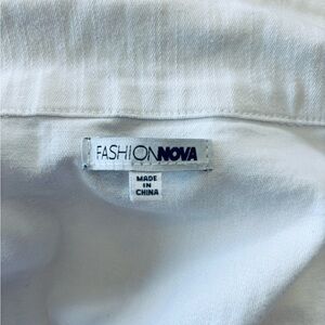 Add a touch of edgy style to your wardrobe with this beautiful white denim shirt dress from Fashion Nova. Perfect for a casual outing or a night out, this dress combines comfort and trend. It is a size Large. Like new 👌 / 🚭