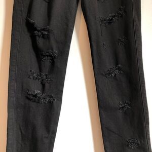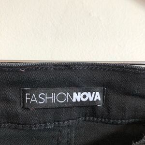 Fashion Nova distressed high rise waist full length stretchy skinny leg fit jeans jeggings bottoms pants. Black in colour. 2 back pockets and 2 faux front pockets. Size 3 - no option so listed as size 2. Approximate measurements | waist: 24“ length: 39.5“ inseam: 29“ rise: 10.5“ Great gently pre loved condition / EUC. Fabric and care tag are pictured. Offers welcome!