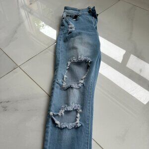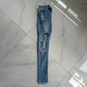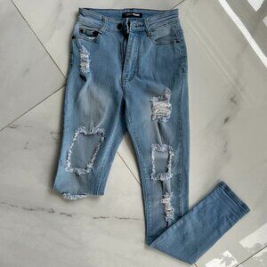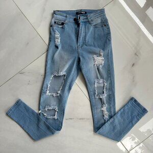 Fashion Nova Distressed Skinny Jeans | Size 3/4 | Light Wash Denim