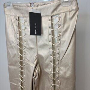Fashion Nova Gold High Waist Lace Up Pants Size Large