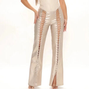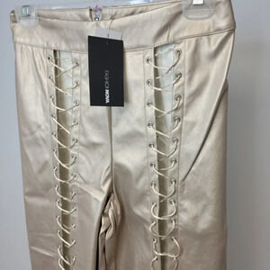 Fashion Nova Gold Lace Up Pants Size Medium NWT